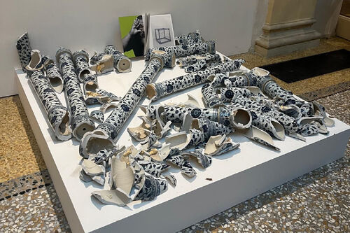 A sculpture by Ai Weiwei was destroyed during the opening of his exhibition at Palazzo Fava in Bologna last Friday. The work, Porcelain Cube (2009), was shattered by a man who pushed it over and then held a piece of it above his head. The man was then tackled by security, as shown in CCTV footage from the event shared on Ai’s Instagram.