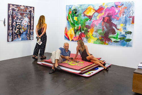 “It’s very different from the others we’ve done,” said Public Gallery director Harry Dougall. Art-O-Rama was the gallery’s first fair three years ago and it has since also exhibited at Frieze London. “We had good recommendations,” he said. “We learned first-hand what it could offer.” Dougall estimated that the gallery usually has an 80% sell-through rate at the fair. This year, it showcased three meter-high paintings—all depicting two figures by Stefania Batoeva, who’d made them while living in Marseille over the summer.