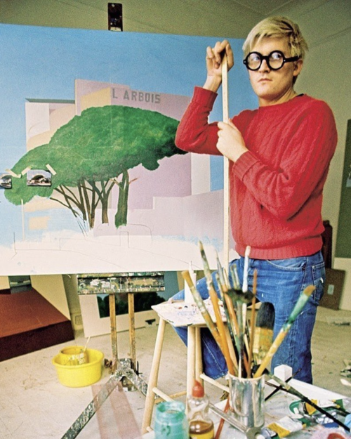 The origins of L’Arbois, Sainte-Maxime trace back to 1966, when Hockney fell in love with artist Peter Schlesinger at the University of California Santa Cruz. Then, in 1968, the two artists would vacation together at film director Tony Richardson’s house near Saint-Maxime in the south of France. During this time, Hockney took photographs of the town, many of which would become the source of some of his most renowned paintings, including L’Arbois, Sainte-Maxime. The painting depicts a sun-drenched view of the town’s Hotel L’Arbois.