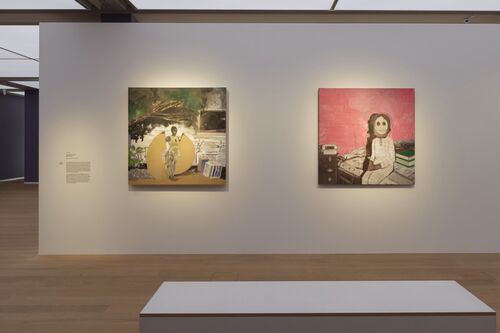 Three works in the exhibition—Candyman (2007), Leni Riefenstahl (2010), and Maury Mondrian (2012)—powerfully remind visitors of how significant this stance is by reinjecting the violence of the white gaze directly into the picture plane. These paintings, featuring white figures alongside Black counterparts, are “an exception” to the general “rule” of Davis’s practice, Malavassi explains. But in Germany, where the audience will admittedly be mostly white, they serve as important reminders of the weight of Davis’s work, of the fraught representations and contemporary histories that his work counters.