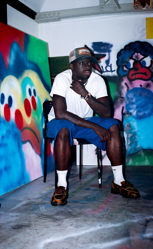 Born in 2000 in Lagos, Slawn started making designs for Nigeria’s first skate brand, Waffesncream, though he always vehemently resisted the label of an artist. In fact, he still rejects the title. “I never saw it as art,” Slawn said. “I just saw it as I’m making something, and that’s why I don’t call myself an artist because I feel it’s disrespectful to people that go to school and learn how to do it…I just did it because I kept doing it, and it made me feel safe,” he added.