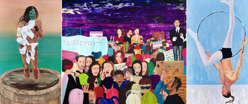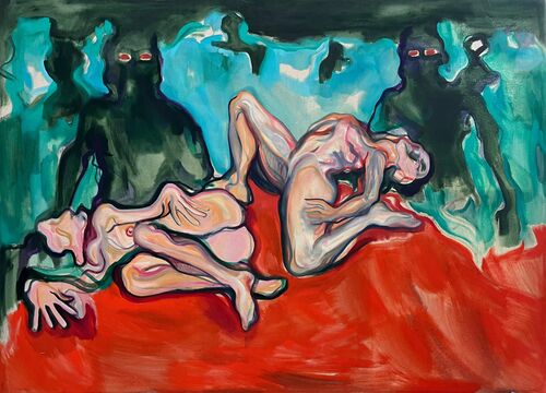 Another notable name is Austrian painter and printmaker Ernst Fuchs, a founding member of the Vienna School of Fantastic Realism who created mysticism-infused paintings and drawings. In the selection of contemporary artists, Nicolette Mishkan, an Iranian American artist based in Los Angeles, showcases futuristic paintings that submerge magical mermaids into aqueous realms. Elsewhere, Zheng Zhilin, based in Guangzhou, China, colorfully explores the sinuous dynamism of body language.