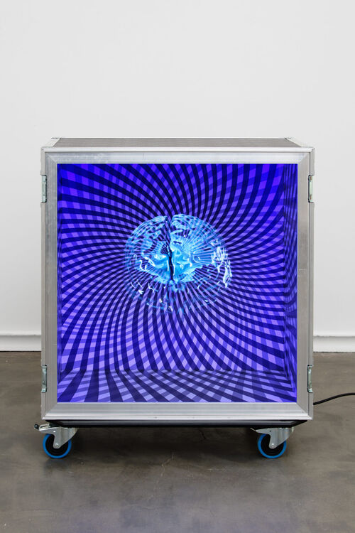 Austrian artist Peter Kogler has been working with digital creativity in an ongoing fashion from as early as 1984, when the first Macintosh computer came on the market. The artist has described this moment as a “paradigmatic shift” when it comes to creating images. Ants, brains, and globes are recurrent motifs that, to him, emphatically highlight our reliance on information systems and communication.