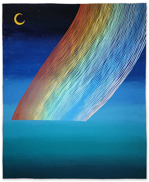 Nearby, Atlanta’s Johnson Lowe Gallery (previously named Bill Lowe Gallery) attracted a steady crowd from start to finish. On the exterior of the booth, the gallery showed massive wall-based resin sculptures that extend above the booth by British artist Judy Pfaff, priced at $25,000 each. The attention-grabbing works made the booth a pit stop for most visitors. Across the booth, Johnson Lowe Gallery showcased artists across its program, with works by Michael David, Yulia Pinkusevich, Sergio Suárez, and Fahamu Pecou priced between $4,000 and $55,000.