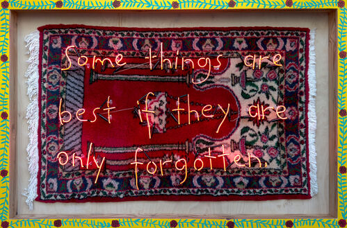 Like almost all of the galleries at the fair, Anna Laudel is presenting a group presentation of its artists, from playful word art textiles by Ramazan Can to austere paintings by established artist Hanefi Yeter.