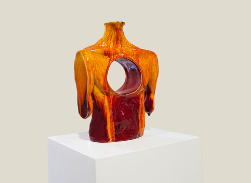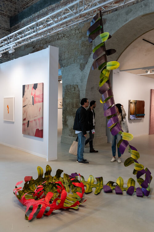 One such way that the fair is moving forward this year is with a new guest country program that spotlights Spain and Spanish-speaking countries and Latin American exhibitors. Buenos Aires’s W-Galería, which is hosting one of the fair’s few solo booths, presents ceramic torsos and smattered glazed ceramic wall sculptures by Argentine artist Nicolás Guagnini.