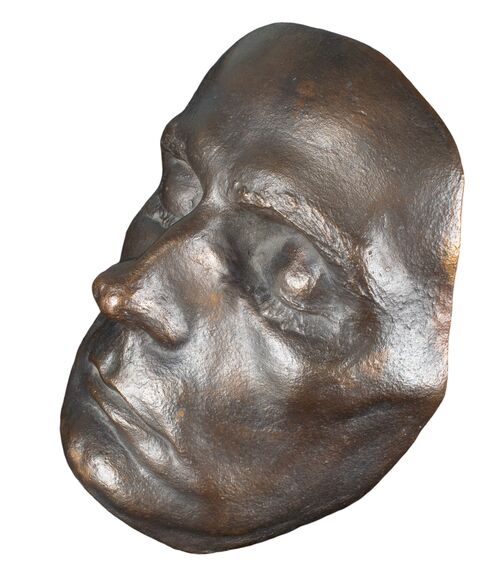 The Death Mask of Egon Schiele (1918) was made by the Austrian sculptor Gustinus Ambrosi two days after Schiele died from the Spanish flu in 1918. Ambrosi visited Schiele’s coffin and made a plaster mold for the bronze death mask. The sculptor made four copies, three of which he gifted to publisher Richard Lanyi, art critic Arthur Rossler, and Schiele’s mother. Ambrosi and Schiele both later represented Austria at the 1925 Biennale di Roma, though the two artists never met in life.