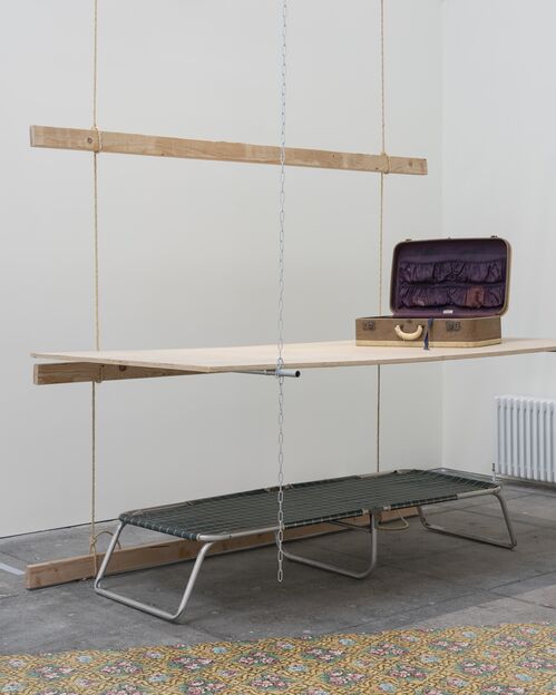 While in New York, Girouard performed in projects for artists such as Richard Serra, Lawrence Weiner, and Laurie Anderson. Meanwhile, she started a series of installations she called “houses”—the first of which was Hung House (1971), first shown in her apartment and then at 112 Greene Street. This installation featured a two-story sculptural arrangement of detritus and abandoned belongings gathered from the building, emphasizing how the most modest materials can still create spaces where people can gather.