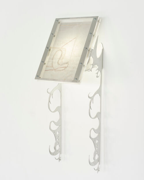 Asserting herself was also an important part of Liu’s 2023 solo show at Make Room in Los Angeles, which represents her. Here, Liu exhibited a series of backlit panels entitled “Fortune Tellers,” which use the vast amount of data she received when sequencing her own DNA. Mounted to the wall at an angle, ready to be read by the viewer, these small sheets of rice paper are printed with Liu’s DNA sequence and then carefully embroidered by the artist in multicolored thread. The series is an attempt to affirm agency over her own body, amid the ambiguities of personal identity that the sequencing process evoked at this time: her Chinese background in the context of heightened anti-Asian racism during the pandemic, for example, or her anticipatory feelings, as a married woman in her thirties, around childbirth and inheritance.