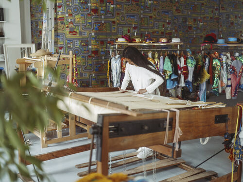 “To wear and make art with these costumes is an honor that must be earned,” she told Artsy. “They hold the knowledge of our ancestors, the stories of our communities, and the history of our country. When we dance in these garments, woven with history, every step carries the echoes of our past and honors the spirits that live in our traditions.”
