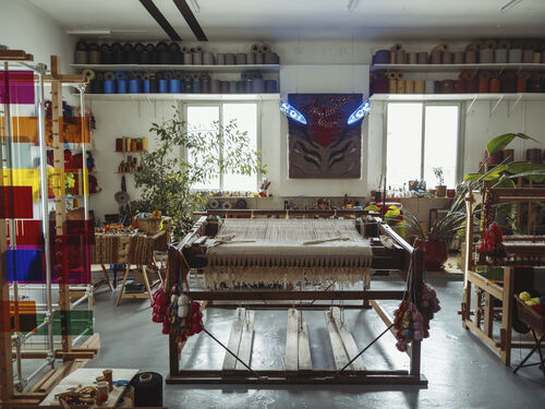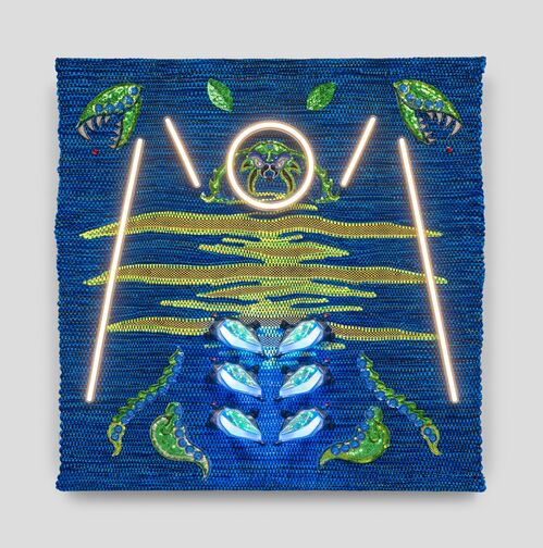 When Kenia Almaraz Murillo first arrived in Paris in 2005 at age 11, it was late December and the City of Light beamed through a soft blanket of snow. It’s a memory that the Bolivian artist recalls with fondness. “I had never seen snow before and was completely in awe. It felt so far from home,” she told Artsy as she prepared for her current exhibition at Waddington Custot in London. This formative experience with snow was what prompted the sculptural integration of LED lights into the tapestry works in her practice, which are on view in the show, “Andean Cosmovision,” through January 30th.