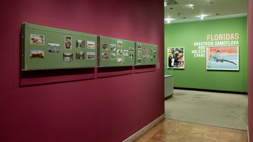 The two-artist show “Floridas” explores the many connotations of the Sunshine State, from tourist paradise to fragile landscape at the frontline of climate change. Photographs and mixed-media paintings by Miami-based contemporary artist Anastasia Samoylova are on view alongside historic, documentary-style photographs and paintings by Walker Evans.