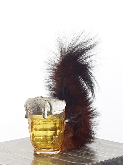 Her whimsical sculptures have a sinister edge, reflecting her own experiences of familial displacement and oppression during the war. Many of Oppenheim’s works are full of contradictions, highlighting the hypocrisies of post-war societies that attempted to regroup in the proceeding years. Her Squirrel (1969) sits at the entrance to the exhibition, a miniature piece consisting of a beer mug with an upright fluffy tail attached. The brutality of this soft, tactile object is implicit: It has been chopped clean off the squirrel’s body. Both the mug and squirrel have been “spoiled” in some way, perhaps revealing Oppenheim’s feeling towards the family unit and broader societal structures in the post-war years.