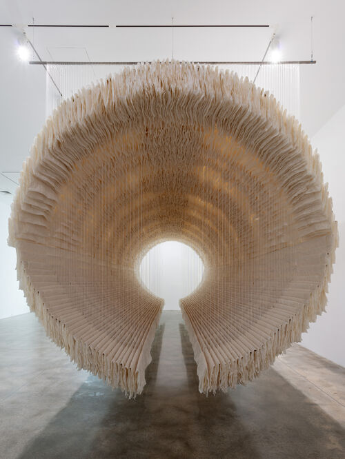 In what has become a tradition, the Rubell Museum in Miami updates its lineup of artworks on view every December, just before Art Basel Miami Beach. This year’s rehang is especially substantial, overhauling half of its 36 galleries. Several spectacles have been stationed, such as Zhu Jinshi’s Boat (2012), an immersive sculpture of 12,000 suspended rice paper sheets.