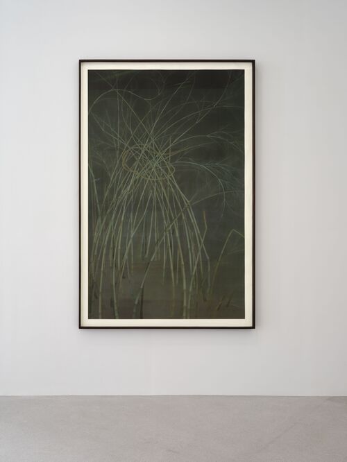 In Hut III (2016), for instance, he paints an unruly, flailing bundle of tied bamboo. It’s a stark contrast to traditional Chinese ink paintings, like in Zhao Mengfu’s Bamboo, Rocks and Lonely Orchids (1271–1368), where bamboo is shown growing gracefully. Here, Hao references this construction material that is no longer widely used in China. “When the ancients planted bamboo seeds, they had to consider the form of future buildings,” Hao said. “When we take a moment to consider bamboo through this lens of the past, it ultimately becomes a revelation of life and existence for us today.”