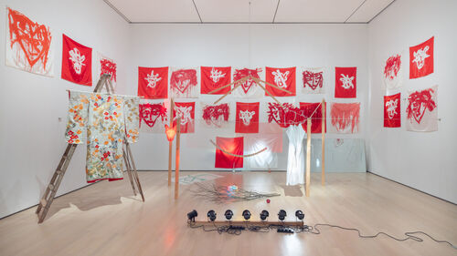 Jasleen Kaur’s Turner Prize–winning installation Alter Altar (2023–24) is a monument to the everyday objects of her life growing up in a Sikh community in Glasgow. The eclectic piece includes an orange Ford Escort covered in a white doily alongside sculptures of outstretched hands.