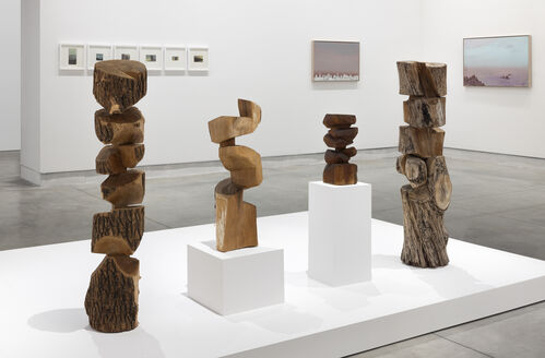 Kim’s work, now known for exploring themes like natural harmony, stood out at the 60th Venice Biennale’s main exhibition. The display featured eight sculptures, four carved from wood between 1979 and 1986 and four sculpted from stone between 1991 and 2001. These pieces are part of her long-standing series “Add Two Add One, Divide Two Divide One,” inspired by the Chinese philosophy of yin and yang.