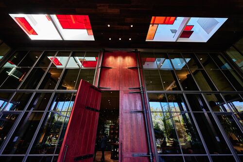 Louis M. Martini’s art program, curated by Georgia Horn, focuses on deep thematic connections between art and wine. “The art is not decoration; it’s not ornament. It’s not superficial in literal or conceptual ways,” Horn explained. “It’s physically integrated into the architecture and conceptually connected to the craft, care, nuance, and complexity of winemaking.”