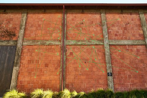 The artworks’ materials themselves tell a story. Cruzvillegas found stacks of terra-cotta tiles—left over from the winery’s original structure after the 2019 renovation—during a site visit. “I asked if I could use them—I didn’t know what for yet. It was kind of a blind date,” he said. The tiles became a bridge between past and present in the Culture-map. Outside, the Nature-map is incised in the same tiles, with soft green lines blending subtly into the façade as though they had always been there.
