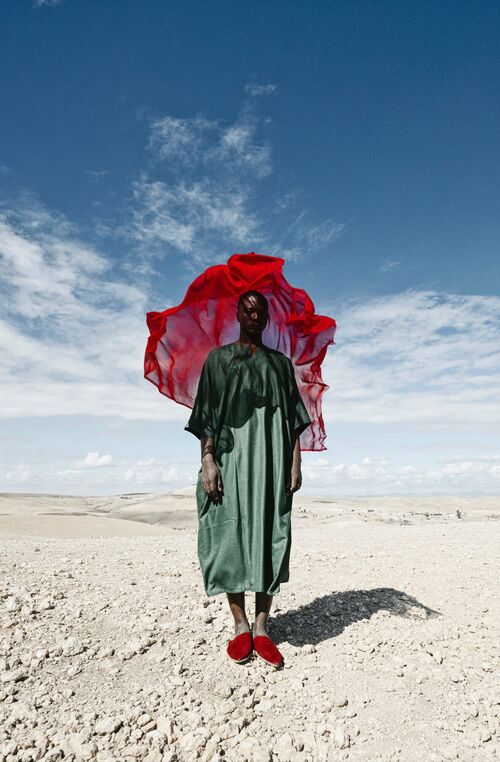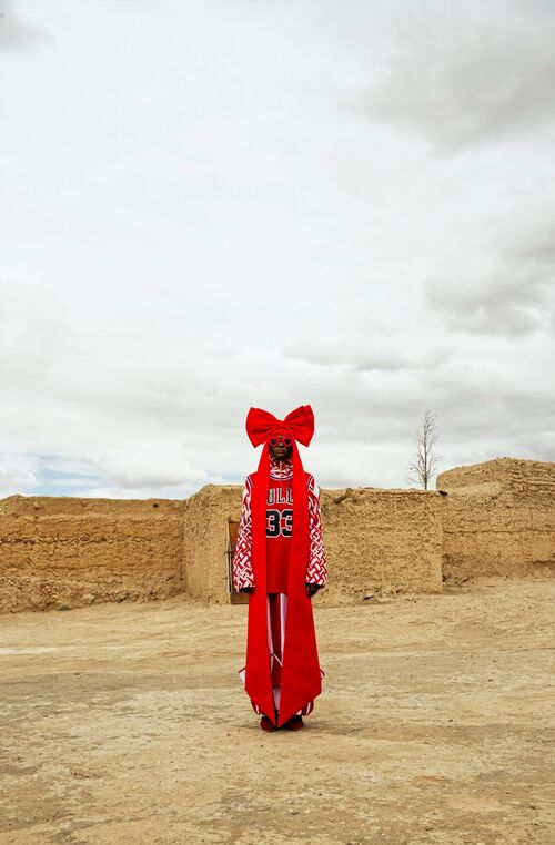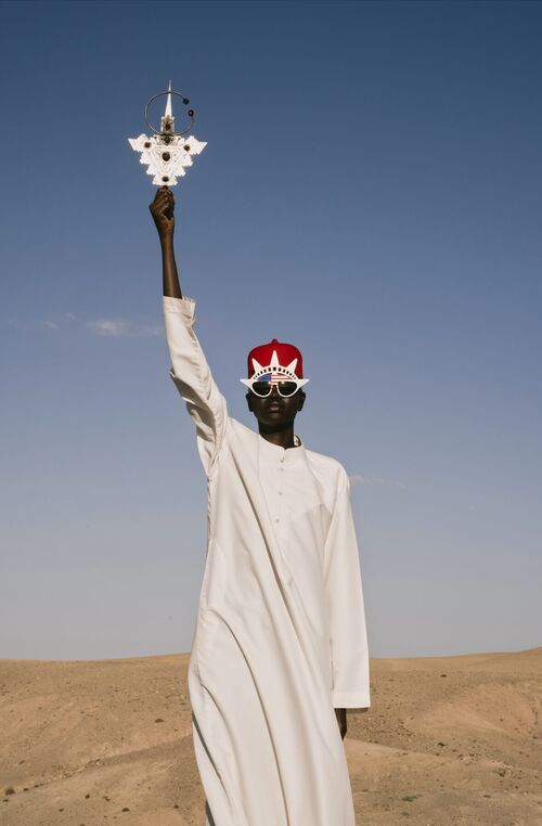 Since his first solo exhibition in 2019, Lamrabat has cemented his status as a first-rate image maker and storyteller. Drawing inspiration from the pride he observes in his countrymen, his images reconcile and celebrate his mixed heritage, intertwining cultural roots with a broader narrative of identity and belonging. Having spent the past decade building a successful commercial profile in Europe by shooting fashion editorials in GQ and Vogue, Lamrabat considers this latest collection of images––shot over a three-week period in the vast, moonlike plateaus of Agafay, just south of Marrakech––a homecoming of sorts.