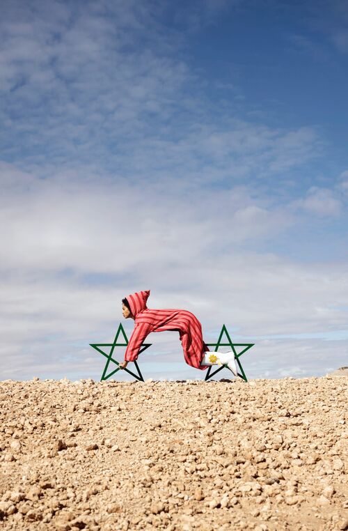 The star on the Moroccan flag, for example, a powerful national symbol, returns as a recurring motif throughout this series of images. It’s a sacred “logo” of sorts, serving as a bridge between nostalgia and hope, between the concept of elsewhere and the grounding notion of home.