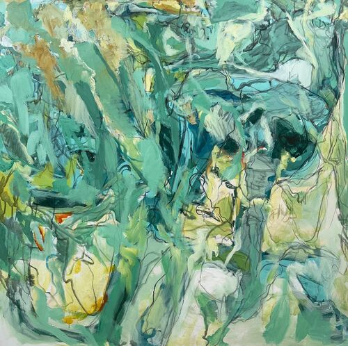 Tesfaye Bekele lays the canvas out beneath him before he starts painting. Supported by metal crutches, the Ethiopian artist towers above his work, swaying rhythmically as he wields a brush on a lengthy pole. This elevated perspective allows Bekele to execute sweeping strokes across his expansive canvases. For instance, in Elongated (2023), a riot of greens and earth tones clash and swirl. This piece is currently featured in Addis Fine Art’s presentation in Black-Owned Galleries Now.