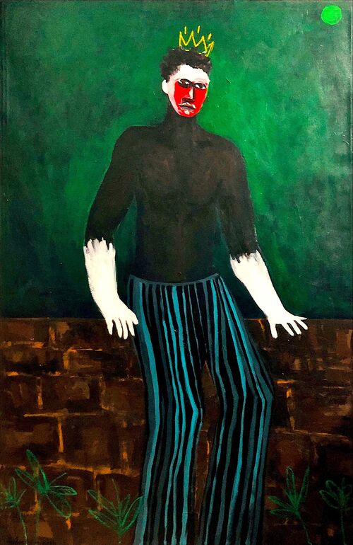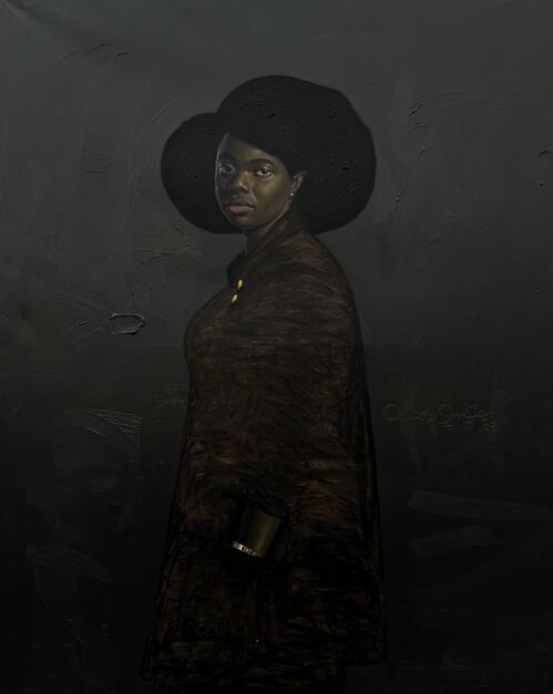 For its presentation at Black-Owned Galleries Now, Akoje Gallery is showcasing work from three painters. Highlights include a portrait by rising Nigerian artist Oluwole Omofemi, whose figurative paintings have been the subject of numerous solo exhibitions with the gallery.
