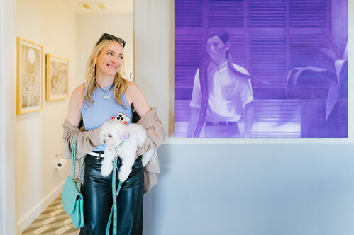 Indeed, on February 19th, at 11 a.m., the fair’s seventh edition attracted an eager crowd to the Hollywood Roosevelt Hotel for its VIP day. This year’s edition of the fair hosts more than 60 exhibitors within the poolside cabanas surrounding the hotel’s iconic David Hockney–designed pool and the suites on the 11th and 12th floors. And, while the hotel felt less crowded than last year’s iteration, a steady stream of fairgoers continued to meander in to enjoy cocktails by the pool and browse the galleries throughout the day. Among the celebrity attendees were generational heartthrobs—from pop star Troye Sivan to the timeless Henry Winkler (Fonzie from Happy Days)—who made their way through the booths. Julia Fox was also spotted engaging with several gallerists around the cabanas.