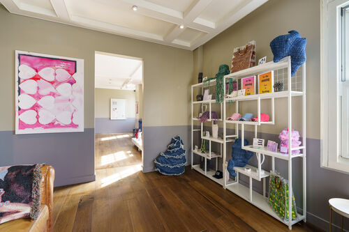 Up the elevators, local tastemaker Megan Mulrooney is showcasing work by 80-year-old Los Angeles artist Nick Taggart. The gallerist, who opened her eponymous space last year, underscored how proud she is of the city’s collective efforts to support artists impacted by recent fires.