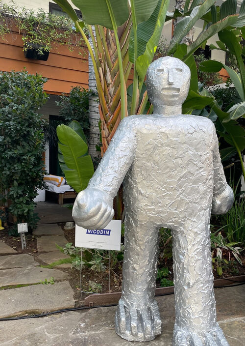 Elsewhere along the pool, West Hollywood’s M+B introduced a group of emerging artists from Brazil participating in the gallery’s residency program, Domo Damo. This initiative aligns with an upcoming exhibition opening on Friday, which features both historical and contemporary artists. The showcase includes works by Gustavo Caboco, Lu Ferreira, Lucas Almeida, Luciano Maia, Mateus Moreira, and Thiago Molon, with prices ranging from $6,000 to $30,000. Above all, M+B founder Benjamin Trigano emphasized the fair’s significance to the city: “It was much needed [after] what’s happened. We needed this energy to come back because everybody was so devastated, and this is a little hope for us,” he said.