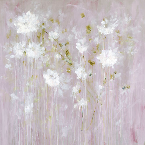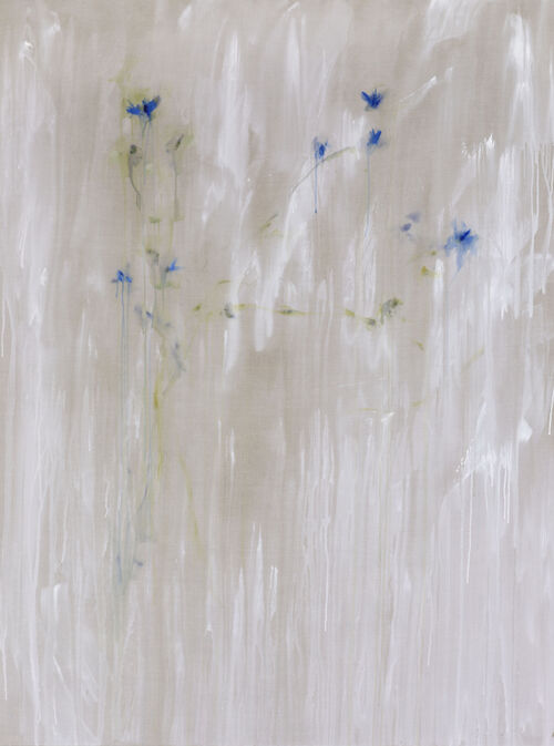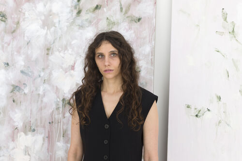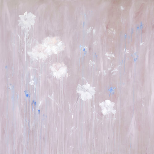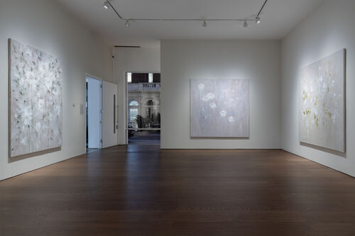 Bianca Rafaella’s paintings dance and flicker. Recognizable forms such as flowers move into focus amid a sea of pale, ephemeral-seeming marks. These large canvases communicate the British artist’s unique way of seeing: She is partially sighted and experiences nystagmus in her left eye, which creates involuntary movement. “My work shows how someone with very little distance vision can interact with paint through a completely tactile process,” Rafaella said in an interview ahead of “Faint Memories,” her first major solo show, on view through March 15th at Flowers Gallery in London.