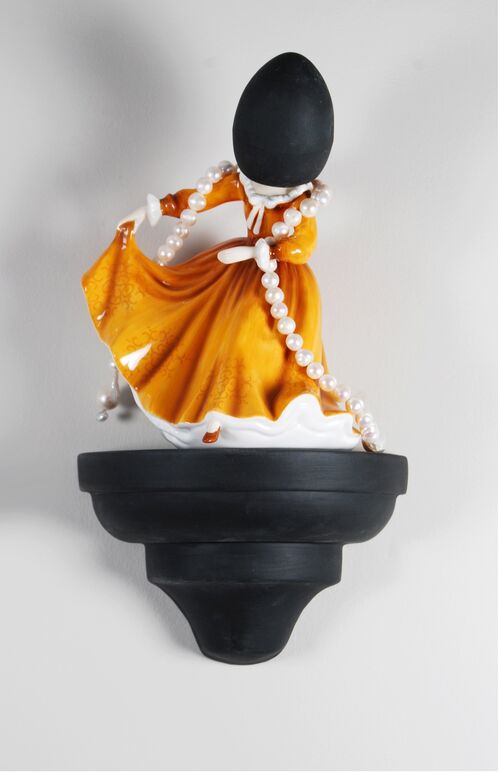 When a collector couple noted that every inch of their walls was covered in paintings, the London gallerist Cynthia Corbett saw an overlooked opportunity. She suggested acquiring three handcrafted sconces by Matt Smith, made with 18th-century female figurines reworked with Parian black porcelain.