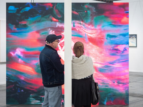 In an attempt at offering some fluidity to the fair’s formalities, French artist Céline Condorelli’s pleated curtain reimagined the entrance as a stage. Between the established and emerging booths, meanwhile, was a walkthrough archive created by Juan d’Oultremont, where artists and audiences could take stock of a past and present. In a commitment to fostering experimentation, the fair also introduced two major initiatives. First, The Screen, a curated video art section, selected by KANAL-Centre Pompidou's Eliel Jones, together with Brussels-based filmmaker Alex Reynolds. Here, six projects were featured from participating galleries, including Galerie Kandlhofer and Harlan Levey Projects, in a selection of works that the curators said “all play with the documentary and experimental essay form, at times rubbing with the personal and fictional.”