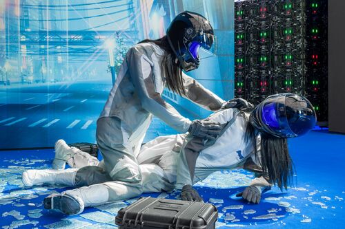 But optimization has a dark side. The speculative world Kim has created is a means to discuss “technoprecarity,” a term coined by a group of scholars at the University of Michigan to describe “the premature exposure to death and debility that working with or being subjected to digital technologies accelerates.” For Kim, Korea is a foremost example of this phenomenon: “Everything is produced under the conditions of extreme competition,” she said. “This ‘survival game mode’ is embedded in all Korean people in all sectors of society…I wanted to call out this competition.”