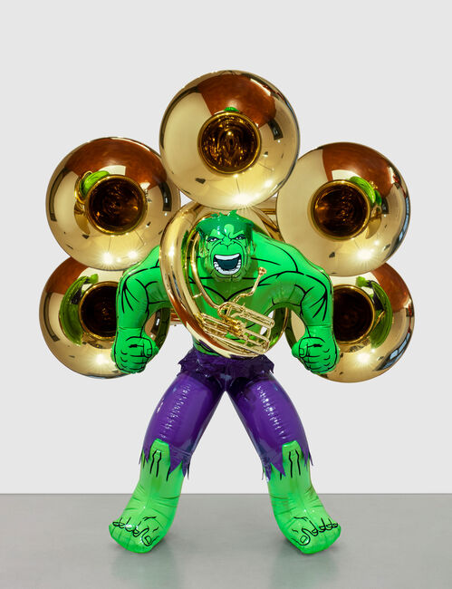Three sculptures from Jeff Koons’s “Hulk Elvis” series will make up his solo presentation with Gagosian at Frieze New York this year, the gallery announced on Tuesday. Hulk (Organ) (2004–14), Hulk (Tubas) (2004–18), and Hulk (Dragon and Turtle) (2004–21) will be installed against a vinyl backdrop adapted from the artist’s 2007 painting Triple Hulk Elvis III, which features the superhero alongside cut images of the rock band Led Zeppelin. All three sculptures come from Koons’s personal collection. Frieze New York will run from May 7th to 11th at The Shed in Hudson Yards.
