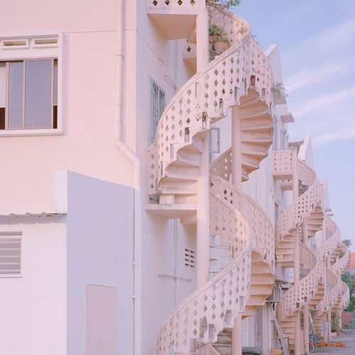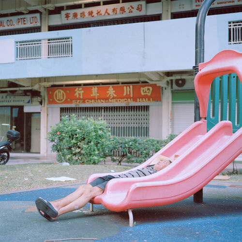 In his series depicting his own hometown, Singapore, Nguan captures long, shadowed outdoor walkways and the spiral staircases that adorn homes’ exteriors. His lens finds a man reclining on a slide and a rainbow painted across an apartment building. Nguan’s body of work recalls Freud’s definition of melancholia: the feeling of loss without a clear idea of what’s gone.