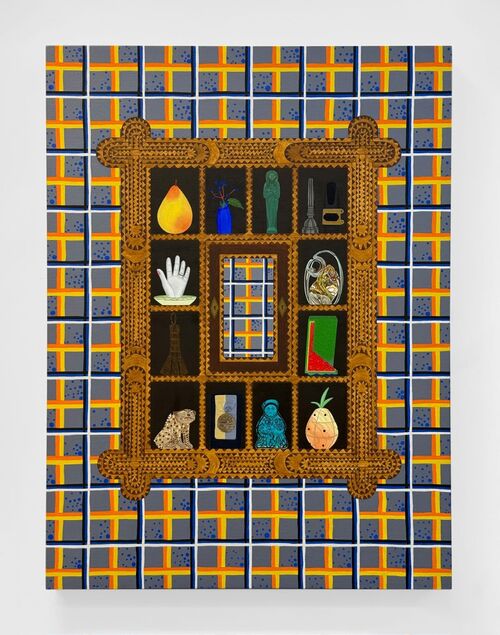 Artist Gala Porras-Kim, too, takes inspiration from the Wunderkammer, though to different ends. In her drawings and paintings, she renders compartments filled with artifacts. She has cataloged the Mayan objects dredged from the Sacred Cenote at Chichen Itza, Mexico, which now reside at Harvard’s Peabody Museum, as well as the ceramics from west Mexico in LACMA’s collection. One ambitious, four-panel work titled 530 National Treasures (2023) depicts heritage items from North and South Korea.