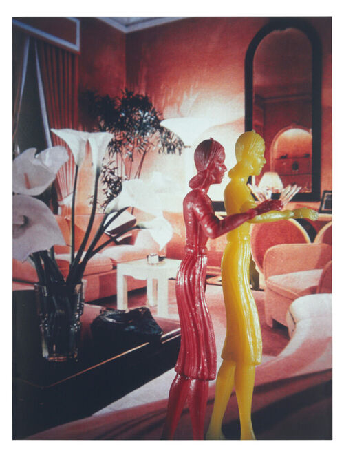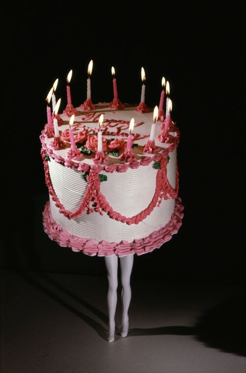 The Pictures Generation photographer Laurie Simmons gained renown in the 1970s for her shots of dolls—often female, frequently placed in miniature domestic settings. Since then, the artist has continued to raise questions about femininity and its attendant expectations. In more recent series, Simmons worked with Alvin Ailey dancers, photographing them wearing heavy costumes resembling inanimate objects. In the resulting images, a home, camera, cake, and more seem to dance around on a pair of legs. The psychological weight of all these objects—each one a site of memory and longing—becomes literal.