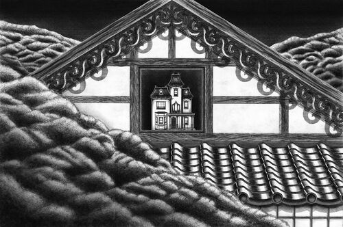 Known for: detailed, enigmatic grayscale drawings of interior spaces