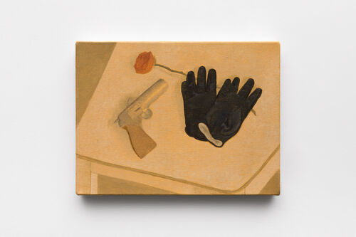 Brazilian painter Paula Siebra’s paintings evoke a certain uncanniness, where one might suddenly slip into a dream. Her poignant still life scenes, rendered in warm, gauzy ochre hues, include carnival masks left atop overflowing dressers, or revolvers laying near a pair of black gloves and a single rose. It’s the mystery of detective fiction and ‘whodunits’ that Siebra, who was featured in the Artsy Vanguard 2023–24, equates to the act of painting. She hopes, in her work, to crystalize the grooves and contours of the world through investigation. The exhibition features a selection of these scenes in addition to a series of landscapes made with careful, painted precision and near-dry brushes. Her poetic, stylized figurative works draw inspiration from Brazilian artist Vincente do Rego Monteiro and Italian painter Antonio Donghi, as evidenced in Siebra’s lyrical, quietly still forms that seem perhaps frozen in time.