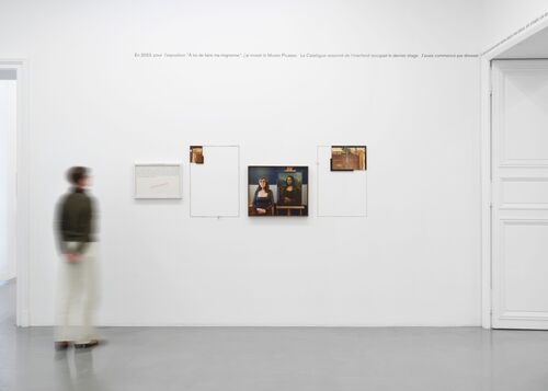 When French conceptual artist, photographer, and video artist Sophie Calle staged her exhibition “À toi de faire ma mignonne” across the entirety of the Picasso Museum in Paris in 2023, she excavated all her half-finished work. All those lingering incomplete projects, hidden away in drawers, were displayed: a bold act of finishing the unfinished. Titled Catalogue raisonné de l’inachevé (2023), the project was staged across the museum’s fourth floor, though the artist felt it didn’t receive its due at the time. Thus, the artist presents it again here—another project made whole by way of a revisit, where errors and failures are celebrated as they are made complete. While many of Calle’s pieces are conceptual—not bound to a physical object—traces of them, in photographs, newspapers, and letters, hang politely on the wall in frames.
