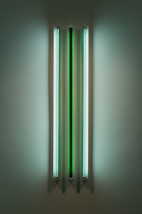 A legendary pioneer of the California Light and Space movement and a pivotal American artist, Robert Irwin recently passed away at the age of 95. This self-titled show that unfolds across White Cube’s Avenue Matignon space marks the final chapter of the artist’s career, as it is the final show he conceived of before his death. On view are a selection of Irwin’s sculptural and wall-based fluorescent works that were produced within the last decade, including #3 x 6' D Four Fold (2016), with its vertically mounted light tubes in glowing shades of cool white and deep green. This work’s interplay of shadows give it a striking silhouette.