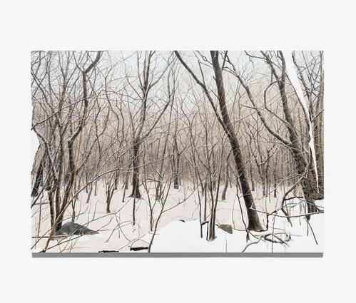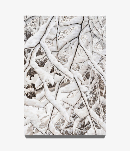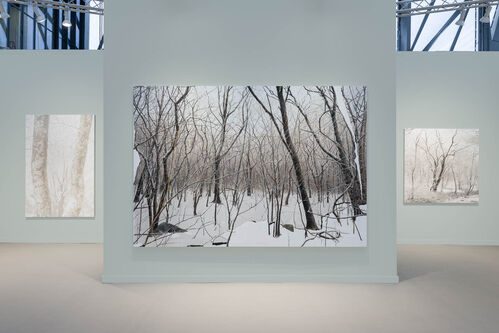 Those looking to retreat from the clammy heat of The Shed on the fair’s VIP day could find some cool in Gallery Hyundai’s solo presentation of snow-dappled paintings by Moon Kyungwon.