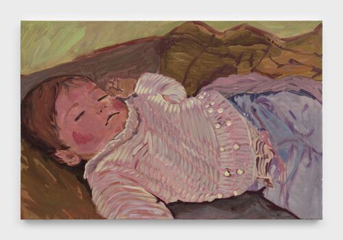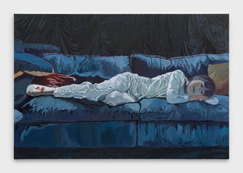 “[Tabouret] created this really amazing group of intimate portraits which explore sleep and memory,” said Peggy Leboeuf, senior director of Perrotin New York. “I was in awe when we opened the crates to see the strong touches of purple, white, and red, the vivacity of gesture, and at the same time, a delicate color palette and the tenderness of her characters.”