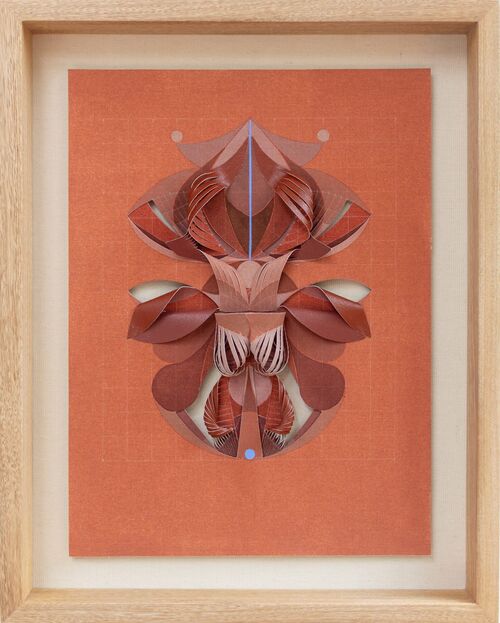 These works are surrounded by a selection of paintings from Cristina Camacho’s “Quickenings” series, which features geometrically carved and folded canvases. Elsewhere, the gallery is presenting six of Pia Camil’s erotic pastel paintings. Works in the booth range in price from $5,000 to $50,000.