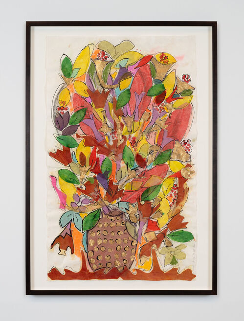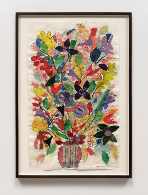 Her age hasn’t slowed her down. If anything, it has sharpened her sense of urgency and delight. At Petzel’s Chelsea gallery, Ducrot is presenting a new body of works in “Visited Lands,” including eight large-scale paintings of ethereal landscapes that use pigment ground from meteorites on her favorite Gampi paper. The exhibition also features her “Profusion” (year) series of floral still-lifes. “The Japanese paper I used is very symbolic; it looks very frail, but in reality, it is strong,” she said. “Let’s hope that our bella terra [“beautiful land”] should have similar qualities to the marvelous Gampi paper.”