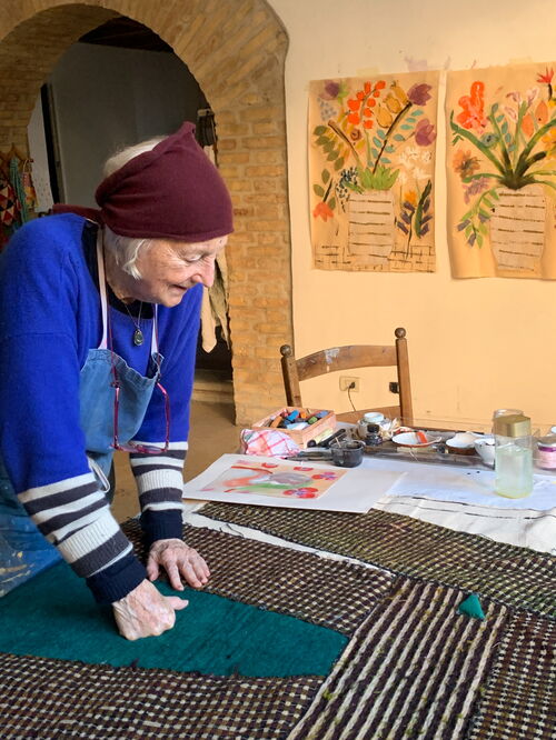 Isabella Ducrot turned 94 this year, and she hasn’t let age interrupt her daily ritual of painting. Every day she walks from her Rome apartment atop the Palazzo Doria Pamphilj to a quiet studio tucked behind a colonnaded courtyard. After writing in the morning, she spends her day painting on Japanese paper with a brush tied to a stick, often closing her eyes and allowing the line to move freely, creating what she calls a “tender image.” “I almost close my eyes, and let the hand go,” she said in an interview with Artsy. “The result that comes out is a representation of that particular experience: ‘tenderness.’”