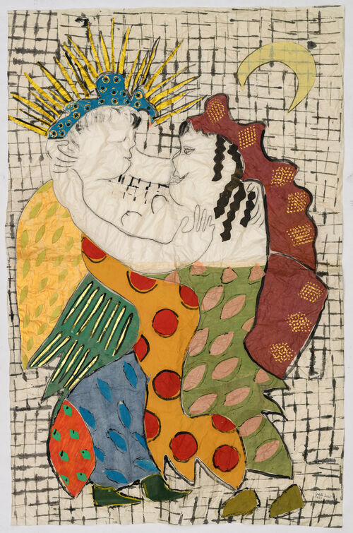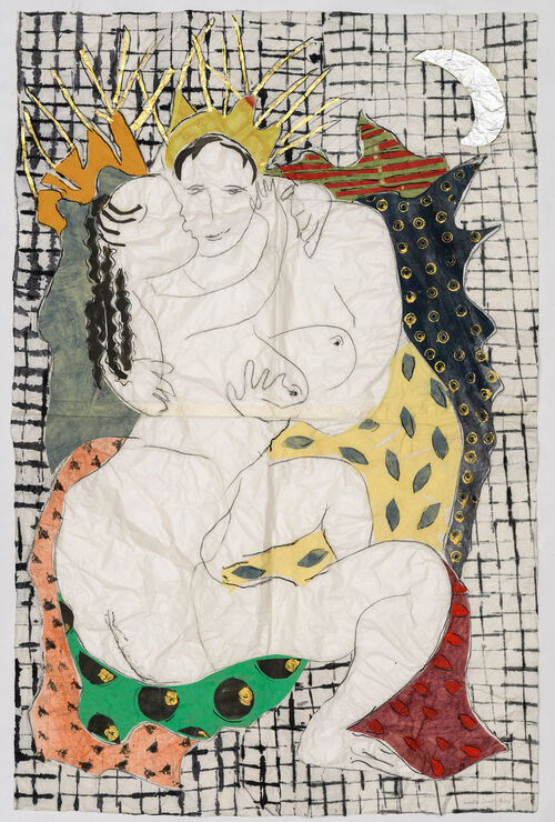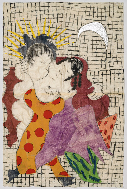 After years of collecting textiles, Ducrot was encouraged to pursue creative endeavors by friends like Italian artists Tatiana Franchetti and Giosetta Fioroni. Ducrot’s first large-scale painting came in her fifties: a loose, expressive ink drawing of two reclining lovers, dashed off on an enormous piece of Chinese paper. “I had received a very, very large sheet of Chinese paper, for the first time, and I felt that the sheet required an appropriately large gesture,” she told Artsy. “In a few minutes, I realized the drawing: surprise, satisfaction, joy.”