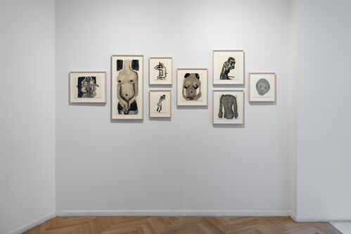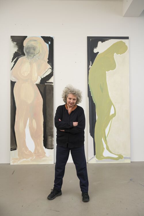 The two most recent works on display, Old and Phantom Age (both 2025), show a new side to the artist. They share the monumental dimensions of Miss January, but they couldn’t be more different. These are pale, spectral figures, little more than silhouettes frozen in time on their journey into oblivion.