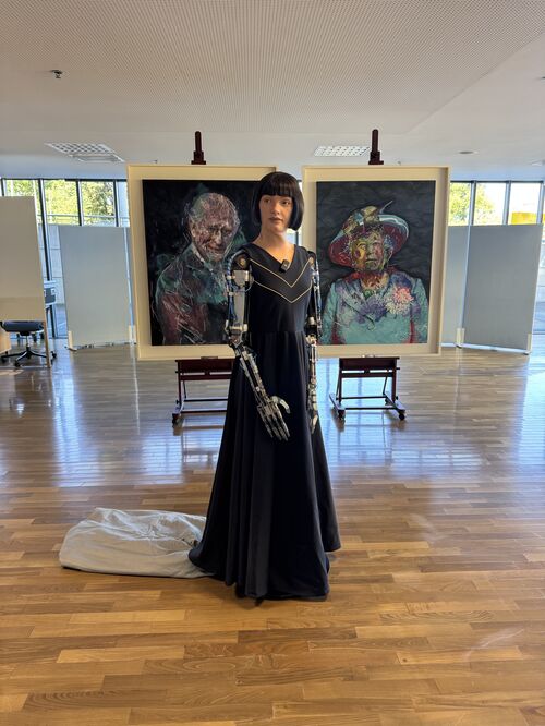 Ai-Da Robot, named after the 19th-century mathematician Ada Lovelace, was devised by British gallerist Aidan Meller in 2019. Built in Cornwall by Engineered Arts and programmed in collaboration with researchers at Oxford and Birmingham universities, the robot is the first ultra-realistic humanoid robot artist. It can produce oil paintings with its robotic arms and engage in conversation through an advanced language model.